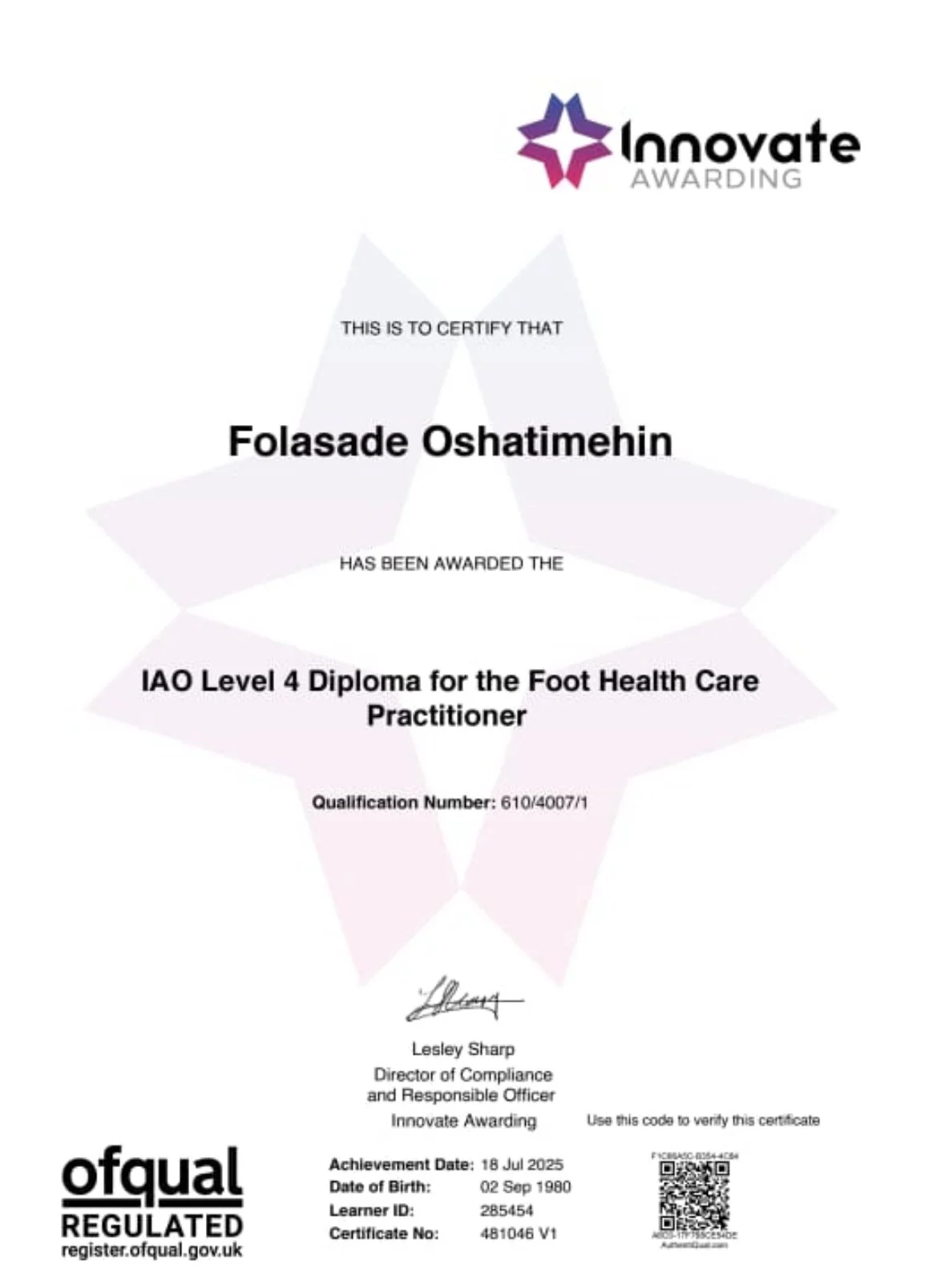 Our verified and qualified Foot Health Practitioners provide gentle, professional care in the comfort of your home. Each practitioner is fully insured, DBS checked, and experienced in supporting seniors, diabetics, and clients with mobility needs.
